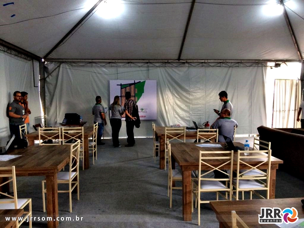 Toda a infraestrutura para estandes temporários para divulgação de serviços/produtos, vendas de loamentos e demais eventos.